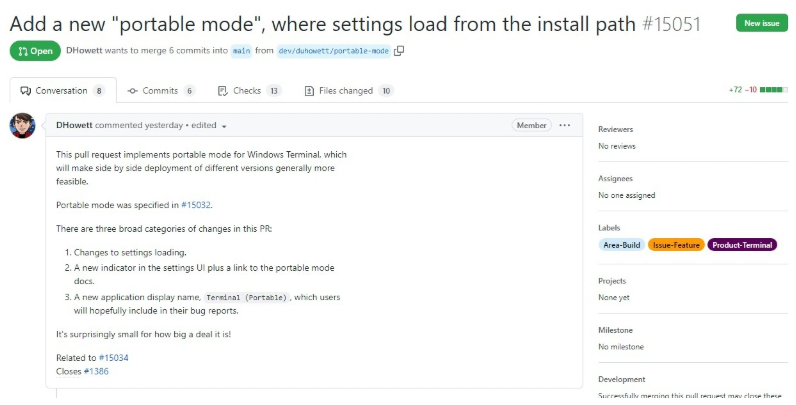 該 PR 主要為 Windows Terminal 實現了“portable mode”(便攜模式),簡化不同版本的并行部署。