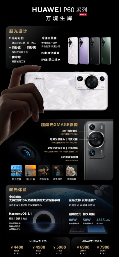 原標(biāo)題:4488 元起,華為 P60 / Pro 今日全渠道開(kāi)售:雙向北斗衛(wèi)星消息、超聚光 XMAGE 影像