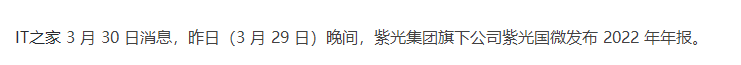 3 月 30 日消息,昨日(3 月 29 日)晚間,紫光集團(tuán)旗下公司紫光國(guó)微發(fā)布 2022 年年報(bào)。