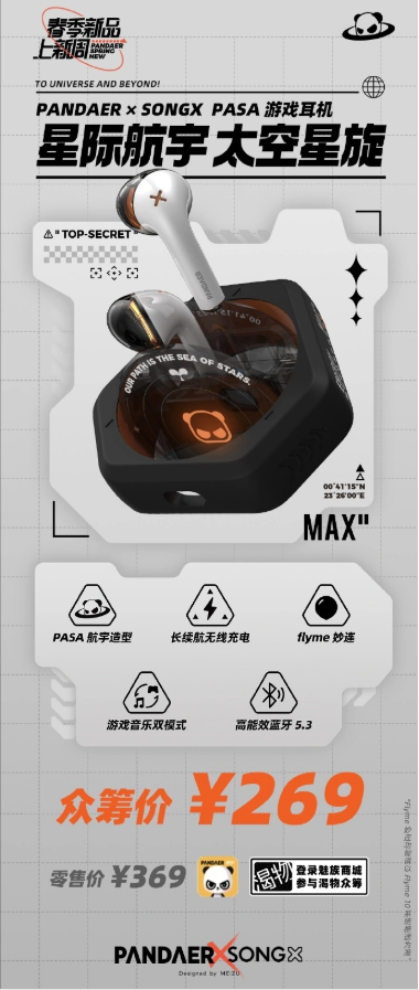 魅族 PANDAER PASA 游戲耳機現已在魅族商城開啟眾籌,原價 369 元,眾籌價 269 元。