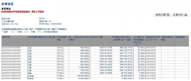4 月 4 日消息,根據港交所披露的文件顯示,理想汽車董事、美團聯合創始人王興在 3 月 20 日至 3 月 30 日期間多次減持理想汽車股票,共計在港股減持 3.096 億港元,在美股減持 1407 萬美元,合計約 4.2 億港元。