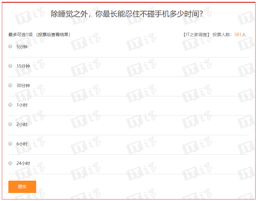 大家在不上班的時間里,是不是幾乎手機都不離手。有的時候帶著手機是生怕錯過工作的信息,有的人是想在自由的時間里享受手機帶來的快樂。大家知道嗎,手機已誕生50周年,這50年里手機改變了我們的生活,像以前的書信慢到現在的一條短信秒送達,還有以前要帶紙幣出門現在一部手機可以搞定等等。有人做了份”大家最長能忍住多久不碰手機“的市場調查報告,調查結果在下文顯示。