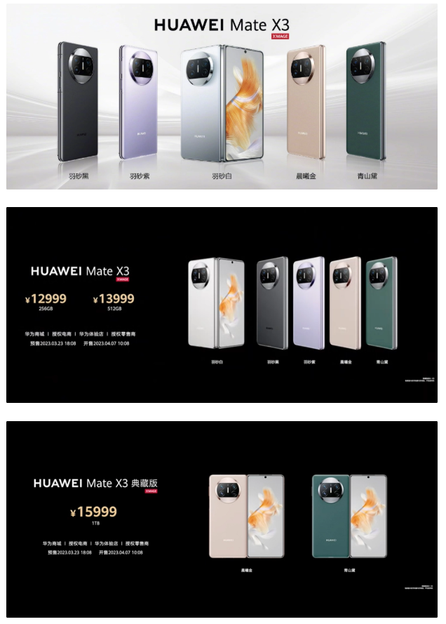 4 月 7 日消息,華為全新折疊屏旗艦手機 Mate X3 系列于今日上午 10:08 正式開售,售價 12999 元起,典藏版 15999 元。