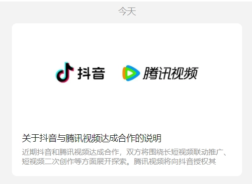 原標(biāo)題:抖音與騰訊視頻達(dá)成長(zhǎng)短視頻二創(chuàng)合作,雙方曾展開(kāi)版權(quán)“大戰(zhàn)”