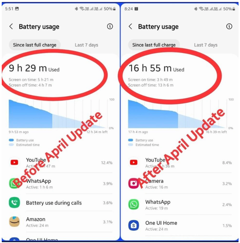 另外一位 Galaxy S23 用戶反饋他手機的待機耗電量從 2-3% 增加到 5-6%。