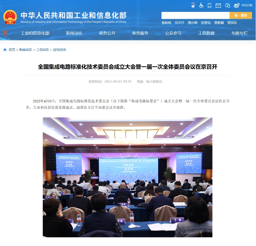 4 月 7 日消息,據(jù)工信部官網(wǎng)消息,2023 年 4 月 6 日,全國集成電路標準化技術(shù)委員會(以下簡稱“集成電路標委會”)成立大會暨一屆一次全體委員會議在京召開。