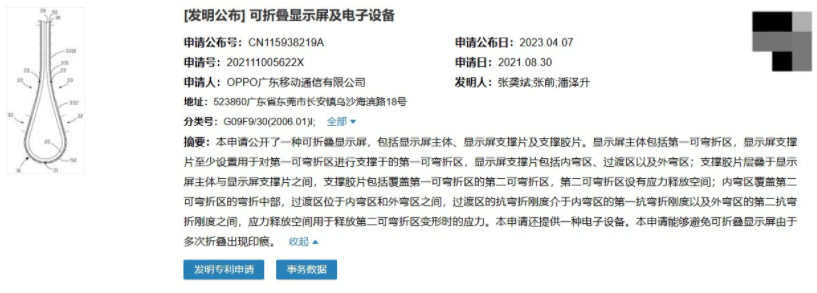 4 月 8 日消息,OPPO 廣東移動通信有限公司申請的“可折疊顯示屏及電子設備”專利近期公布。