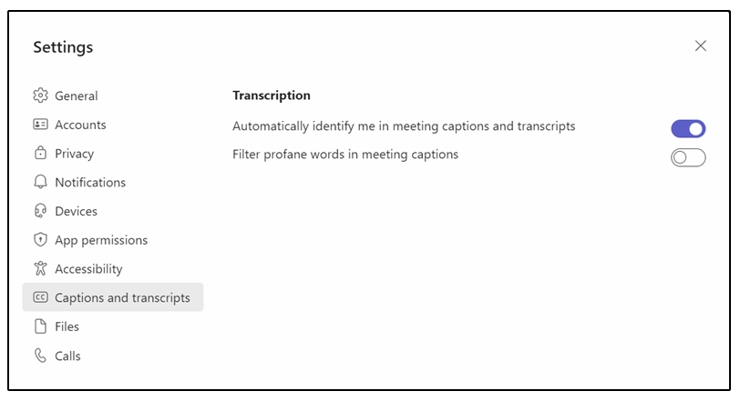 接下來在右側部分會看到“Filter profane words in meeting captions”選項,用戶可根據需求自行決定是否啟用。