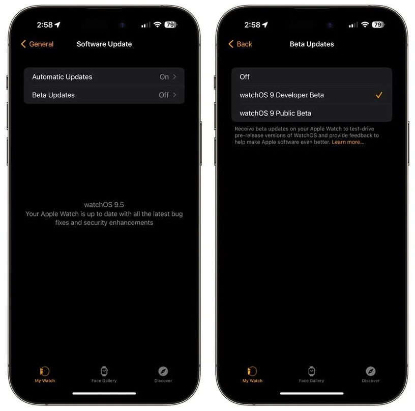 也就是說用戶不再通過 watchOS Beta 描述文件,而是通過 iPhone 上的 Watch 應用程序來啟用 watchOS Beta 更新。
