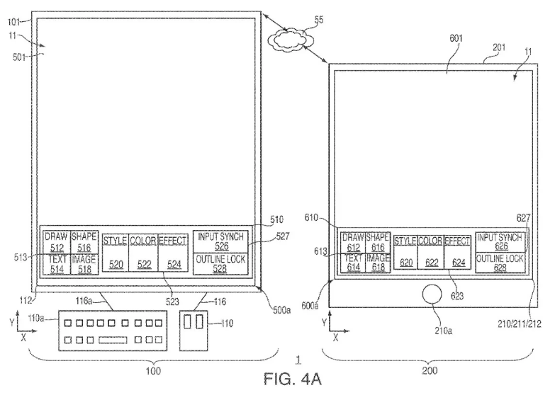 這項專利的名稱為《用于在多臺設備上管理虛擬作品協作的系統、方法和計算機可讀媒介》,可以在 2 臺及以上電子設備上,讓一名或多名用戶協作創建虛擬藝術作品。