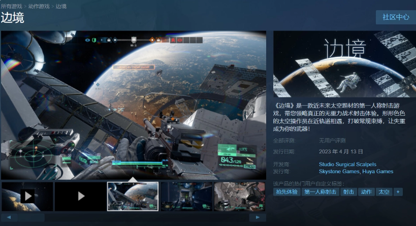4 月 13 日消息,國產太空 FPS 游戲《邊境》國區今日上線 Steam 平臺,售價 68 元起,感興趣的玩家可以點此進行購買。