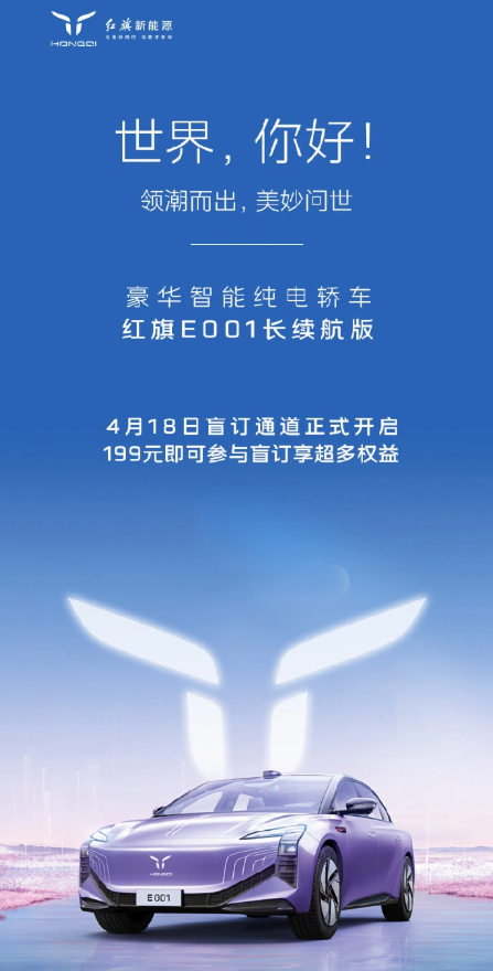 4 月 18 日消息,一汽紅旗今日在 2023 上海車展上發(fā)布了電動中型轎車紅旗 E001.并宣布開啟盲訂。紅旗 E001 定位為電動中型轎車,續(xù)航里程在 600-800 公里,該車將于 2023 年 11 月上市。