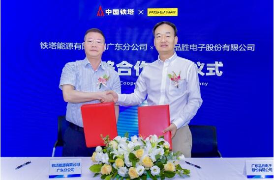 除了新品發布之外,會上鐵塔能源廣東公司與品勝也達成了行業戰略合作,雙方領導共同簽署了戰略合作協議,并為合作商家進行授牌。