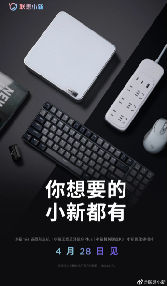 4 月 24 日消息,聯想小新 mini 主機將在 4 月 28 日發布,采用 13代酷睿 H 系列處理器,內置電源設計。聯想還為這款迷你主機配了兩款外設產品,分別為 K3 機械鍵盤與 65W 氮化鎵插排。