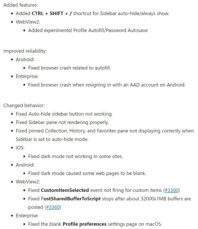 Microsoft Edge 114.0.1807.1 版本最大的亮點,是引入了“CTRL + SHIFT + /”快捷組合鍵,可以快速隱藏 / 顯示側邊欄。