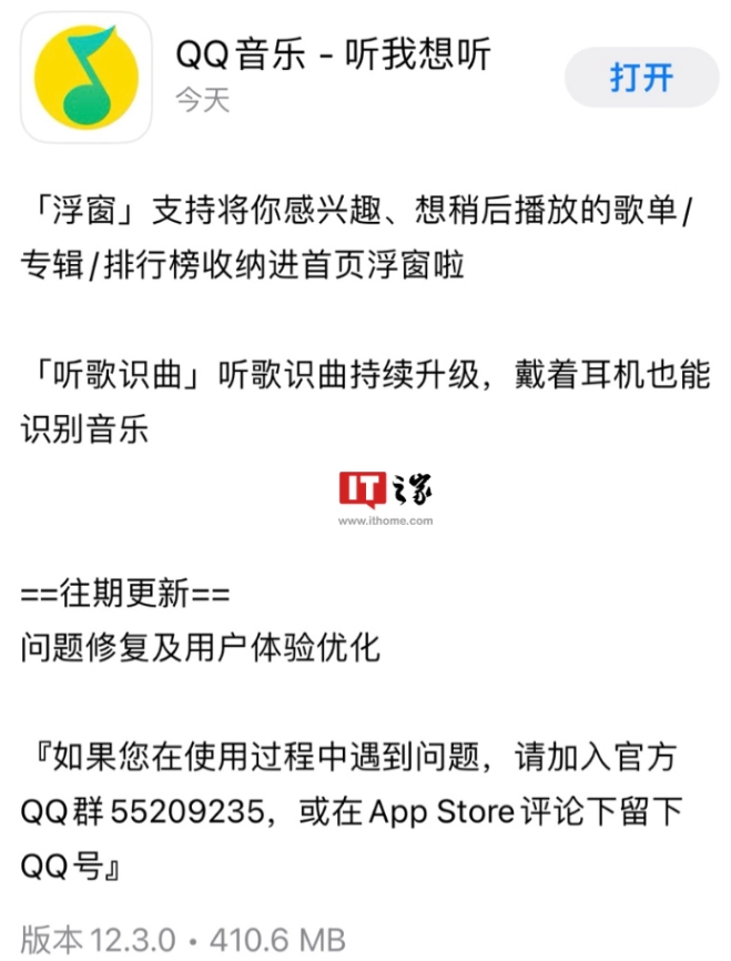 4 月 27 日消息,QQ 音樂 iOS 和安卓端今日迎來 12.3.0 版本更新,此次更新帶來了一項細節功能優化,用戶戴著耳機也能聽歌識曲。