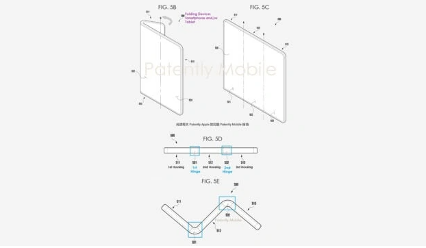 據 Patently Apple 報道,該專利展示了一種設備,使用兩個鉸鏈將手機及其大型 OLED 屏幕折疊成三個大小相等的部分;本質上從平板電腦變成了緊湊型智能手機,允許用戶在平板電腦模式下觀看照片 / 視頻,瀏覽網頁時使用大屏幕,并在旅行時將其轉換為“更小屏幕”的設備。