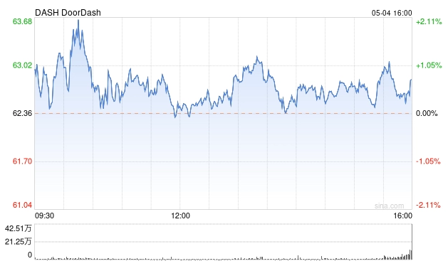 當日,DoorDash 股價在紐約證券交易所的常規交易中上漲 0.47 美元,報收于 62.83 美元,漲幅為 0.75%。在隨后截至美國東部時間 4 日晚上 6 點 13 分(北京時間 5 日早上 6 點 13 分)的盤后交易中,DoorDash 股價再度上漲 2.23 美元,至 65.06 美元,漲幅為 3.55%。過去 52 周,DoorDash 的最高價為 87.00 美元,最低價為 41.37 美元。