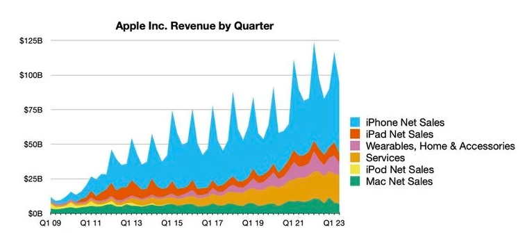 5 月 5 日消息,蘋果今天公布了 2023 財年第 2 財季(今年 1-3 月)的最新財報,整體營收情況和第一財季類似。