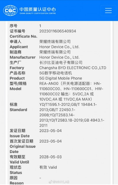 5月5日消息,榮耀90目前已經通過了工信部認證,型號REA-AN00.支持最高66W快充。