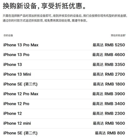 具體來看,iPhone 13 Pro Max、iPhone 13 Pro、iPhone 12 Pro Max、iPhone 12 Pro 和 iPhone 11Pro等機型的換購價值都有所提高,最高可達630美元。而iPhone 13 mini、iPhone 12 mini、iPhoneSE(第二代)等機型的換購價值則有所降低,最低僅為90美元。