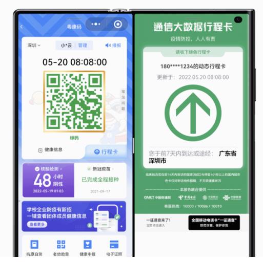 健康碼、行程碼已經成為當下出行的日常,但每次翻來找去很不方便,而華為負一屏就幫助我們解決了這個問題,只需右滑點擊即可展示。